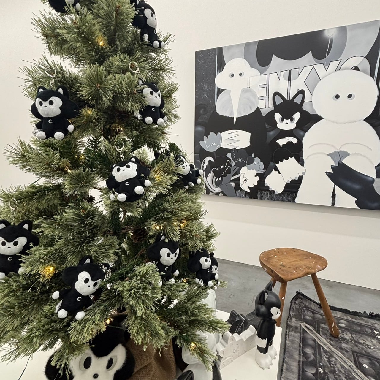 アーティストTIDEのアイコニックなモチーフ "CAT" のぬいぐるみキーチェーン。サイズは高さ12センチ。送料は全国一律800円(佐川急便/国内のみ)